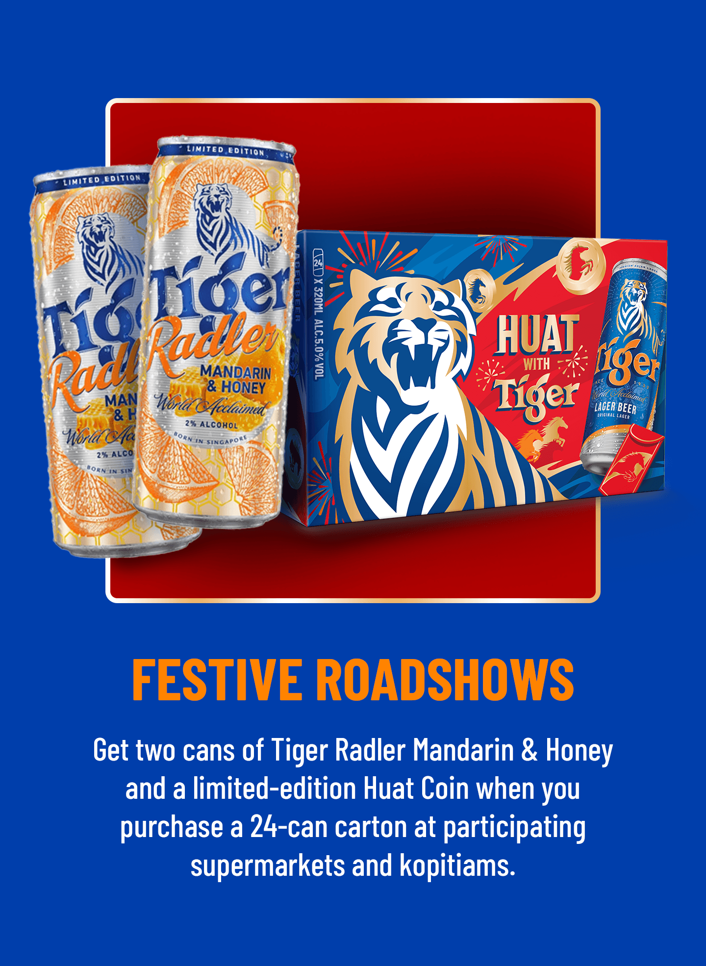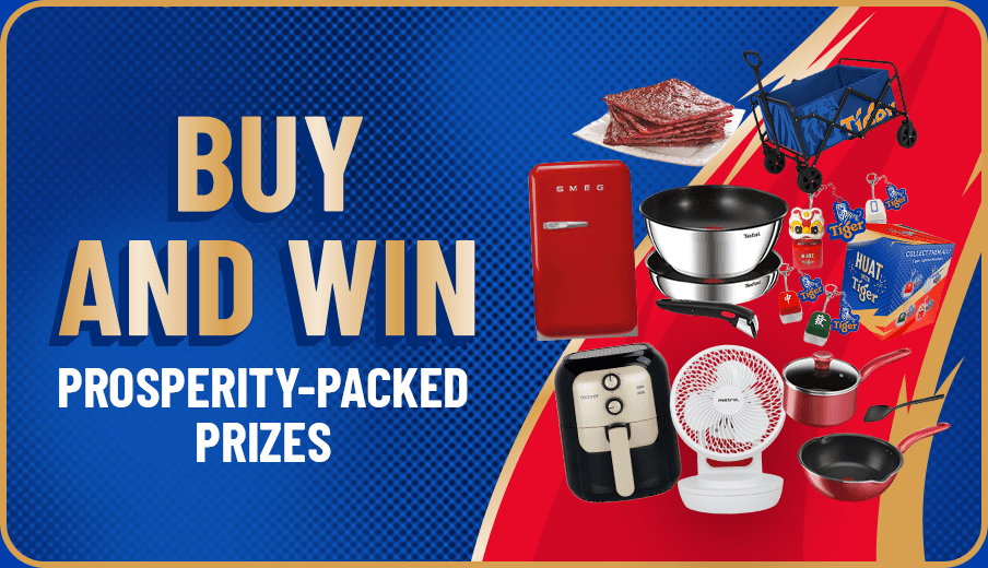 PURCHASE TIGER BEER IN-STORE AND ONLINE AND REDEEM HUAT-FILLED GOODIES!